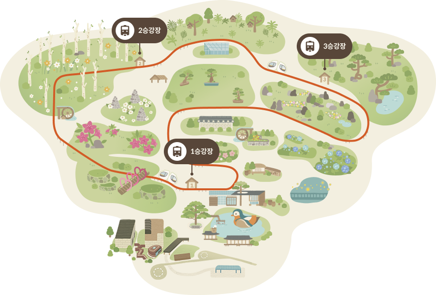 산기슭과 계곡을 따라 조성된 길은 자연의 지형을 그대로 살려 설계되었으며, 아이부터 어르신까지 모두가 안전하고 편안하게 관람할 수 있습니다.